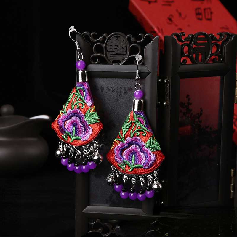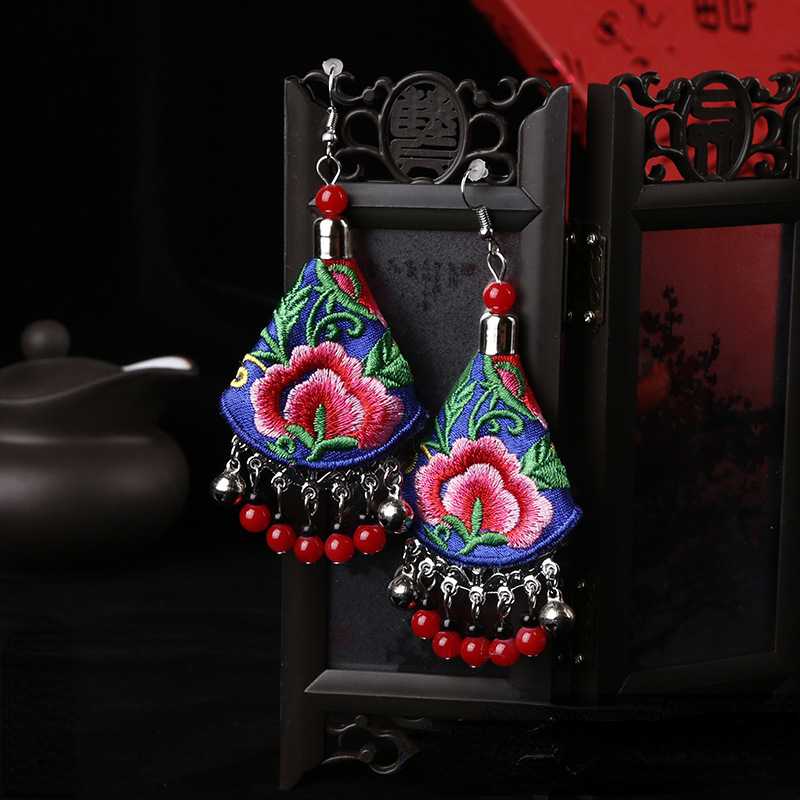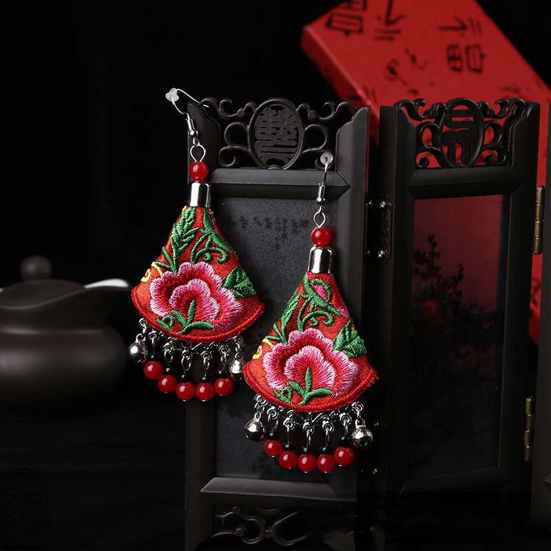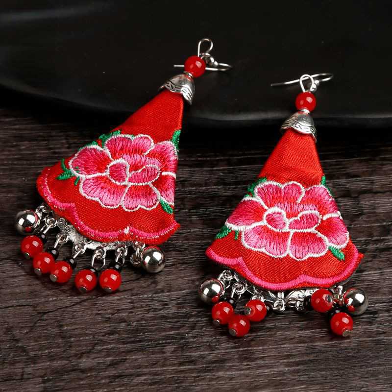 Ethnic Style Handmade Embroidered Earrings Ethnic Earrings Dance Accessories Ethnic Ornaments Peony Earrings