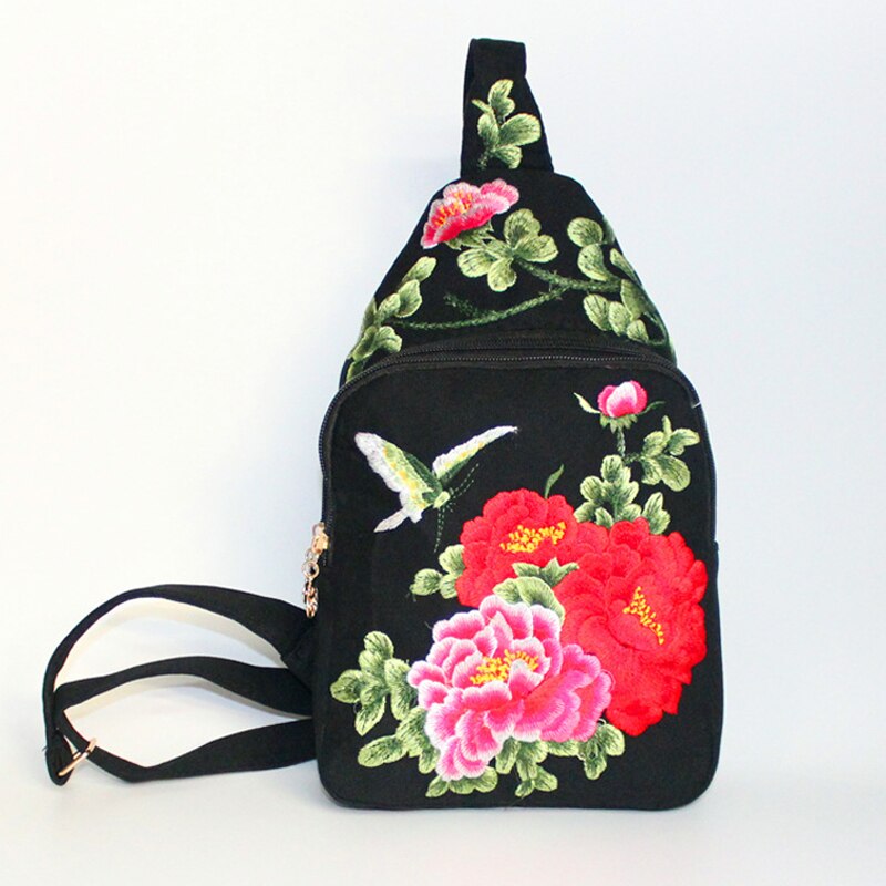 Women Chest Bag Chinese Ethnic Style Hand Embroidery Pretty Flowers Casual Canvas Travel Shoulder Crossbody Bag High Quality
