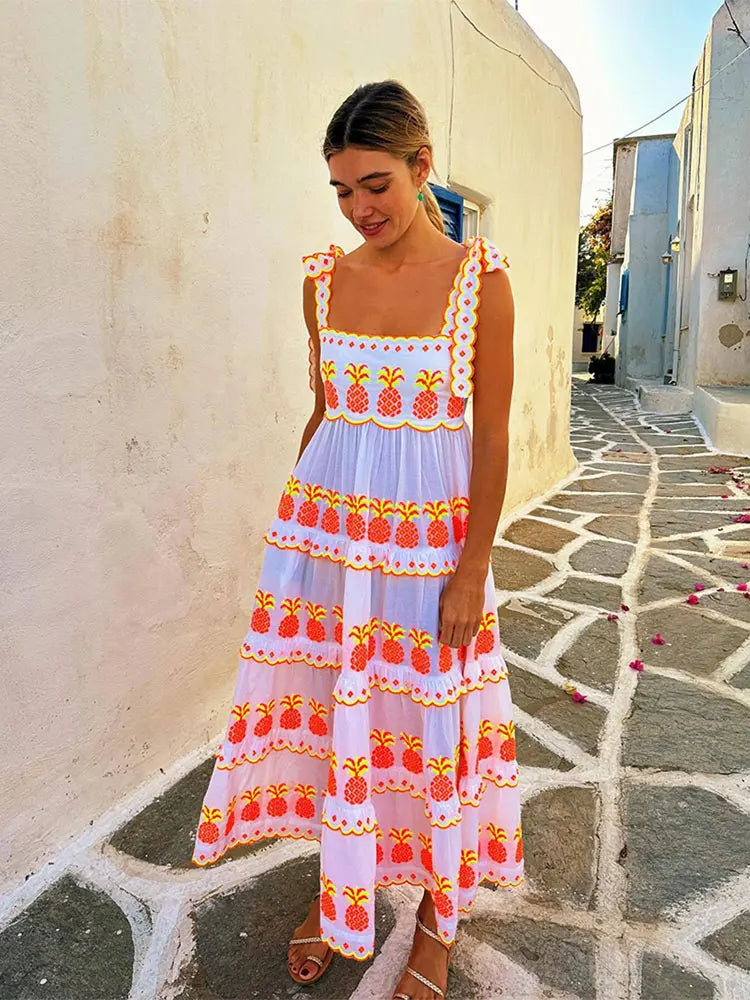 Women Contrasting Printed Sling Lace Up Maxi Dress Fashion Sleeveless Off Shoulder Loose Dresses Vintage Lady Street Vestidos