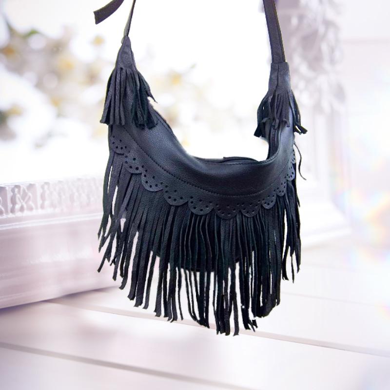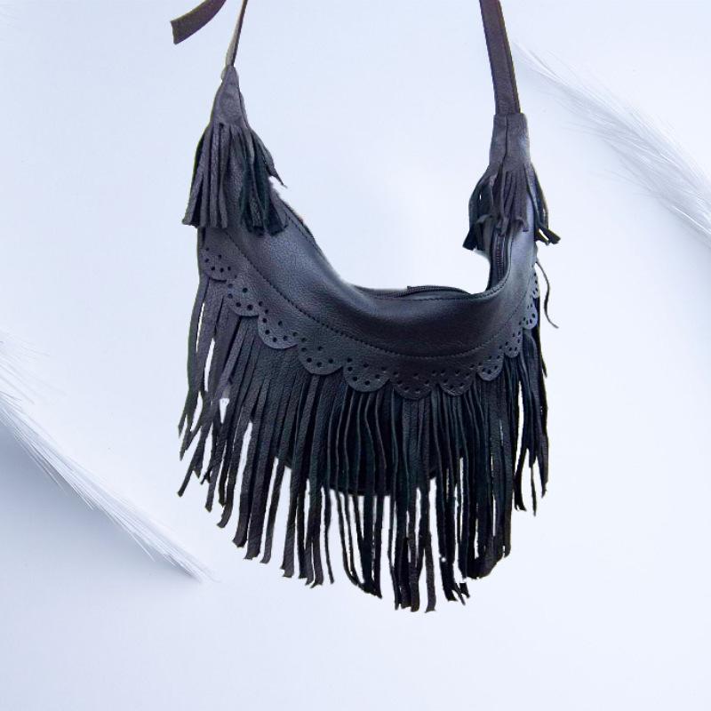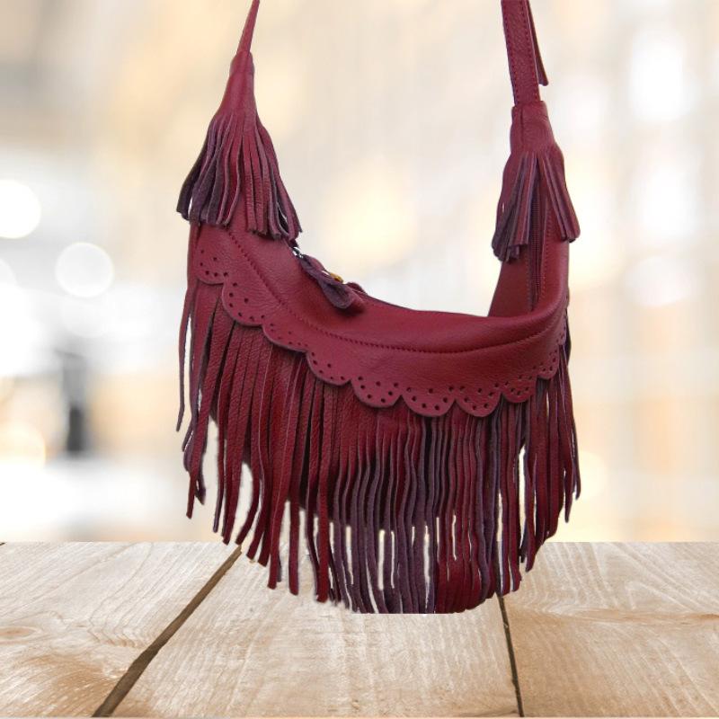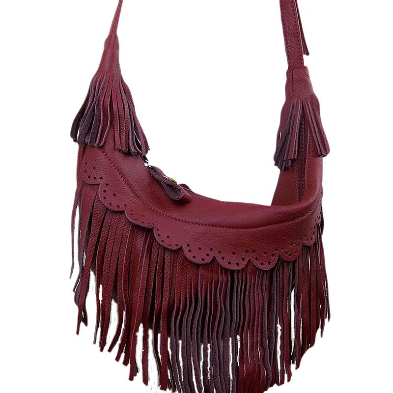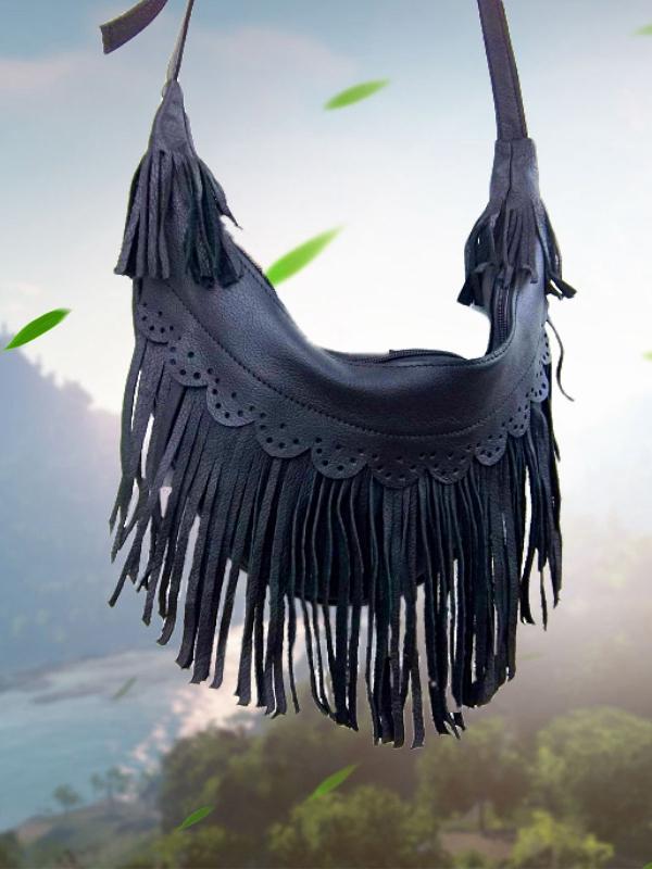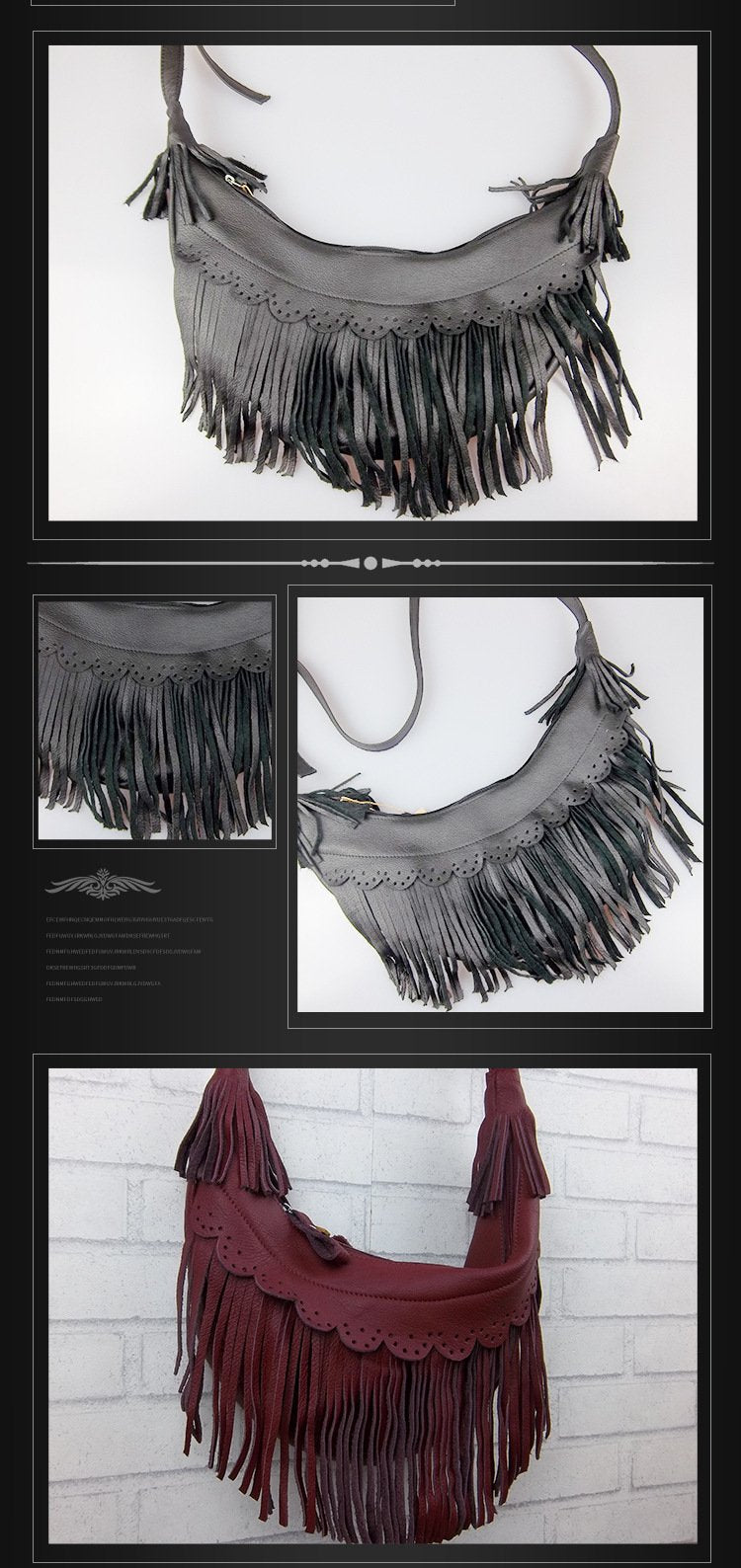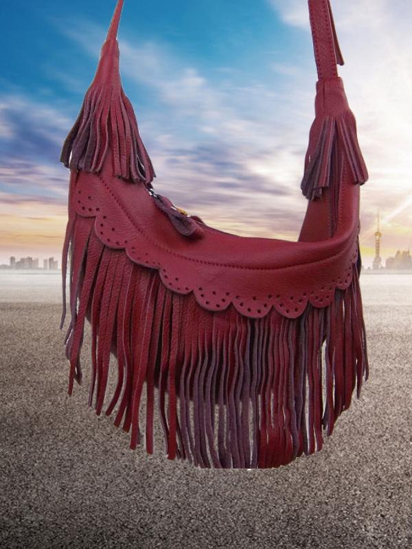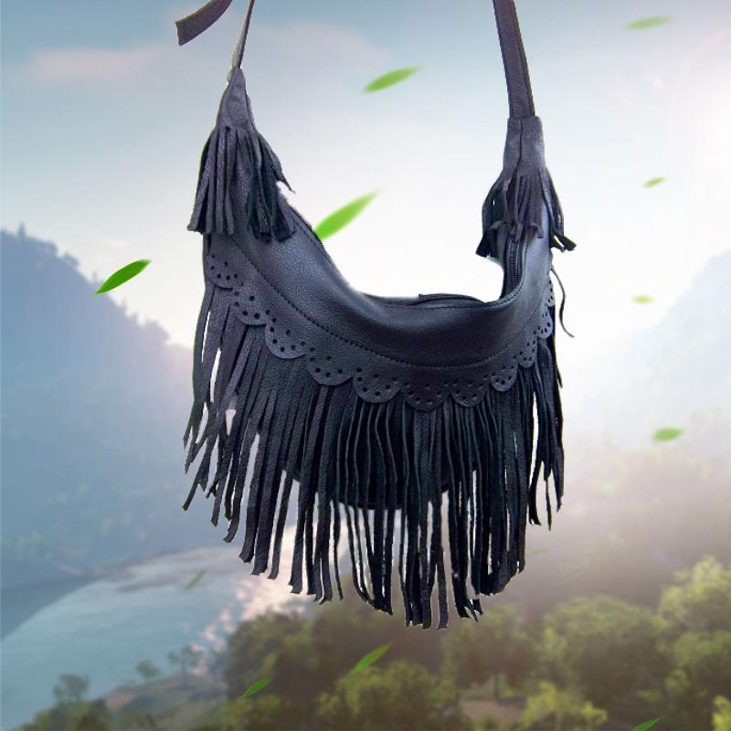 Women Handmade Leather Bag Classic Wild Tassel Crossbody Leather Bag