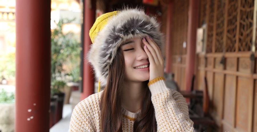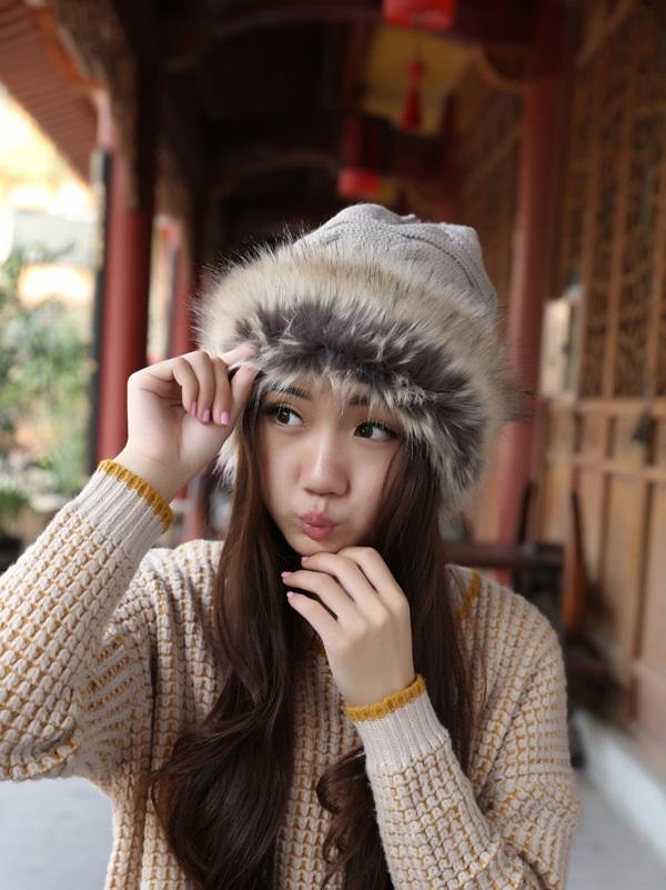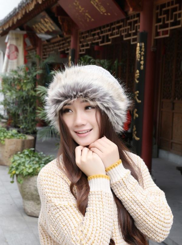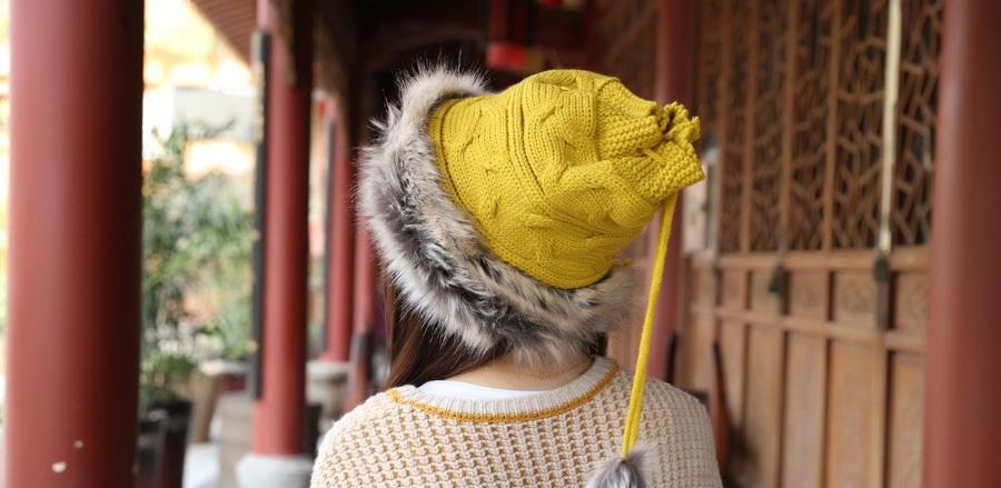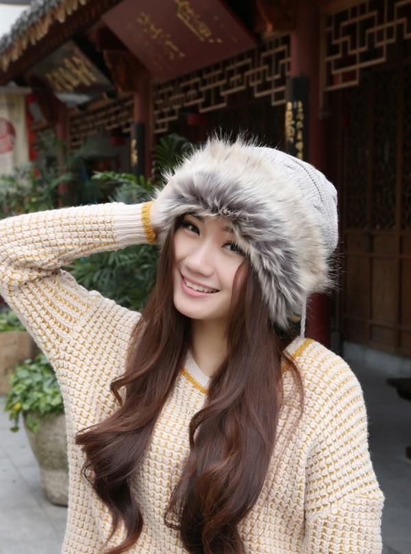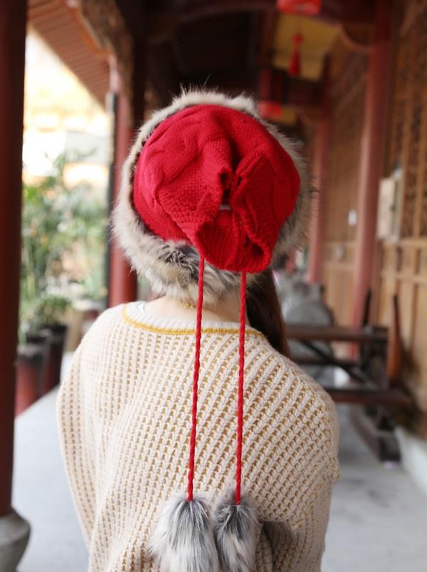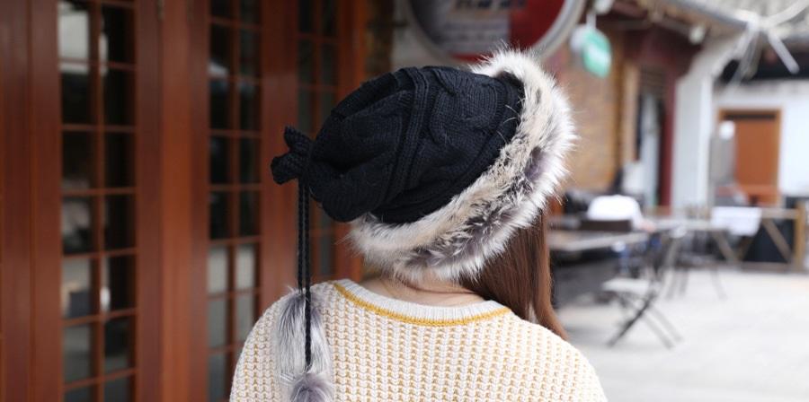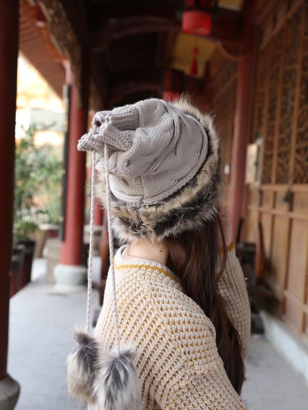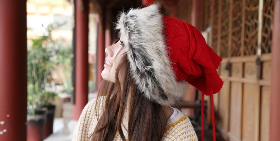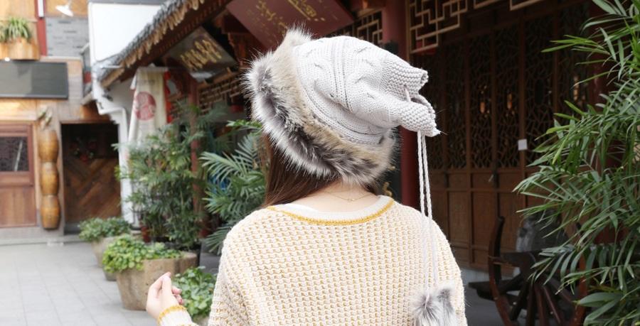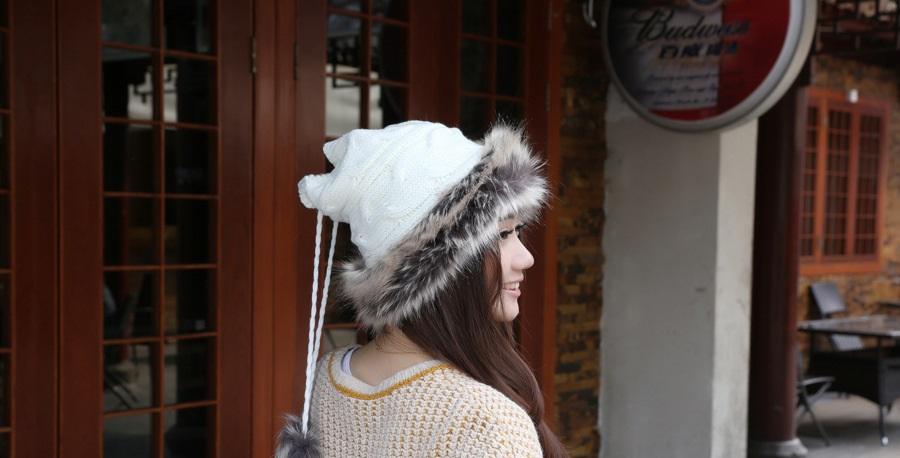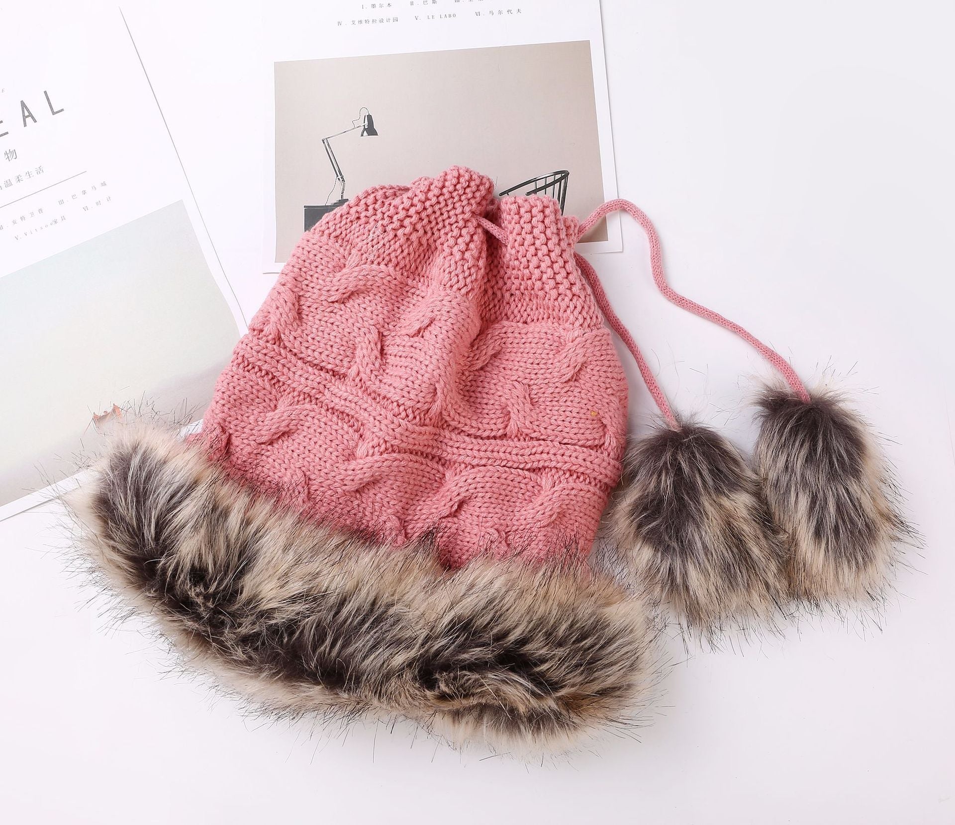 Women Winter Fur Collar Knit Hat Bib