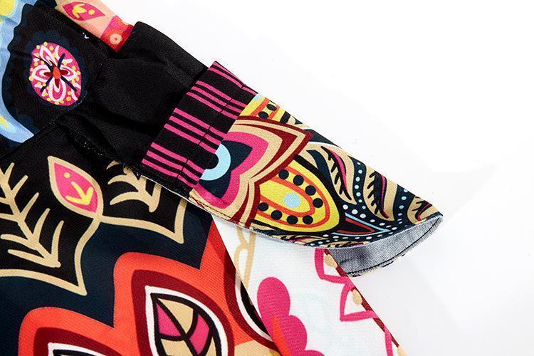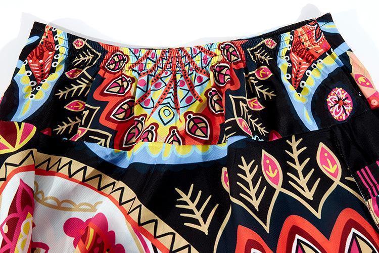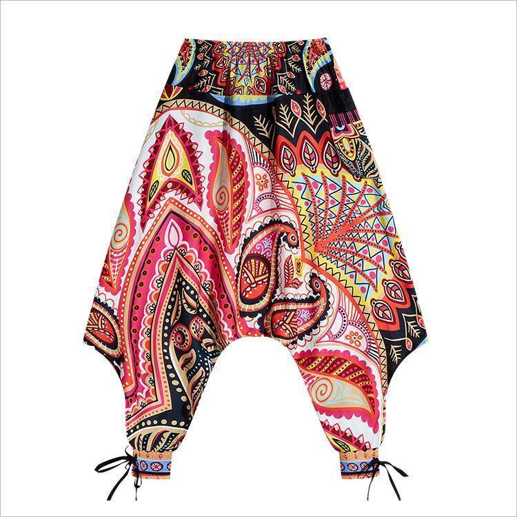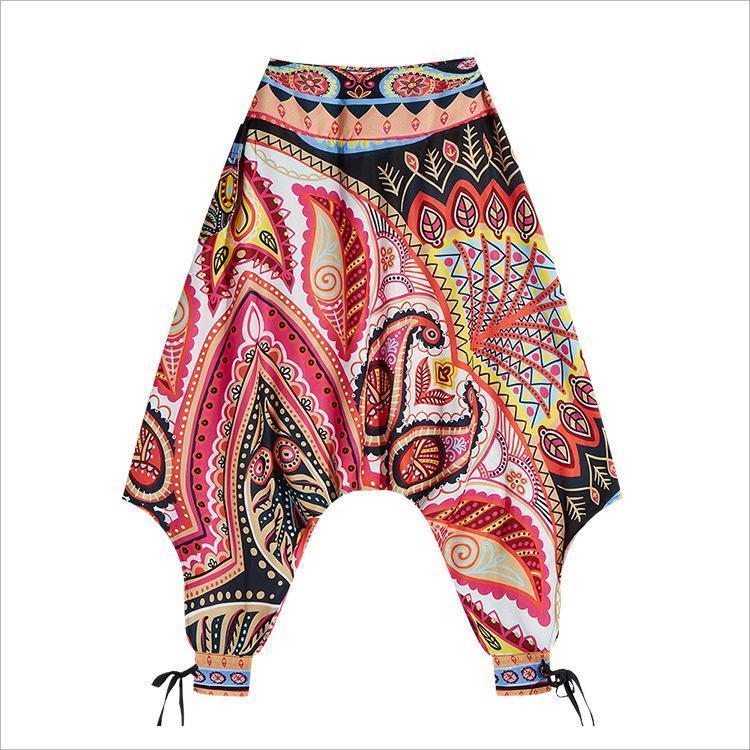 Women's Bohemian Digital Print Bottom with High Waist Showing Thin and Loose Waisted Lantern Pants