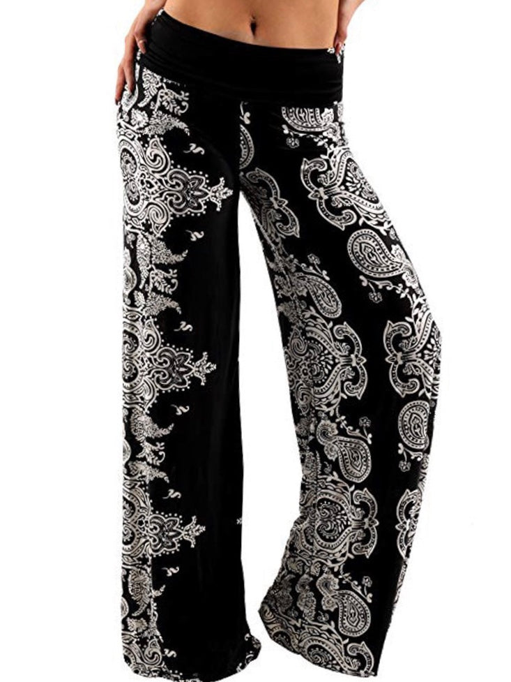Women's Plus Size Pants Fashion High Waist Printed Casual Yoga Wide Leg Pants