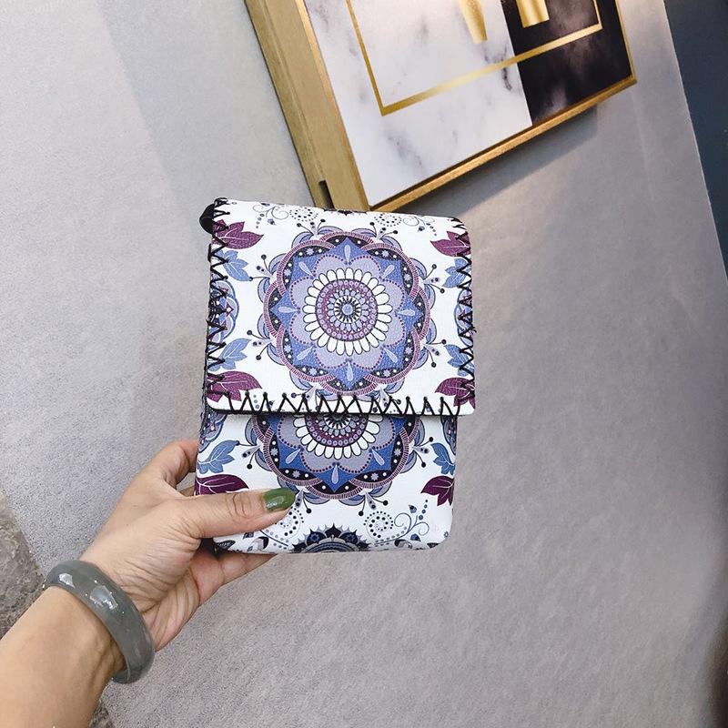 Women's Shoulder Retro National Style Widened and Slanted Mobile Phone Double-layer Manual Bag