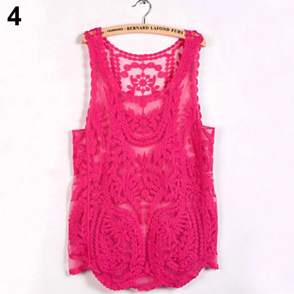 Women\'s Sleeveless Lace Tank Top Sexy Embroidery Hollow-out Floral Crochet Shirt