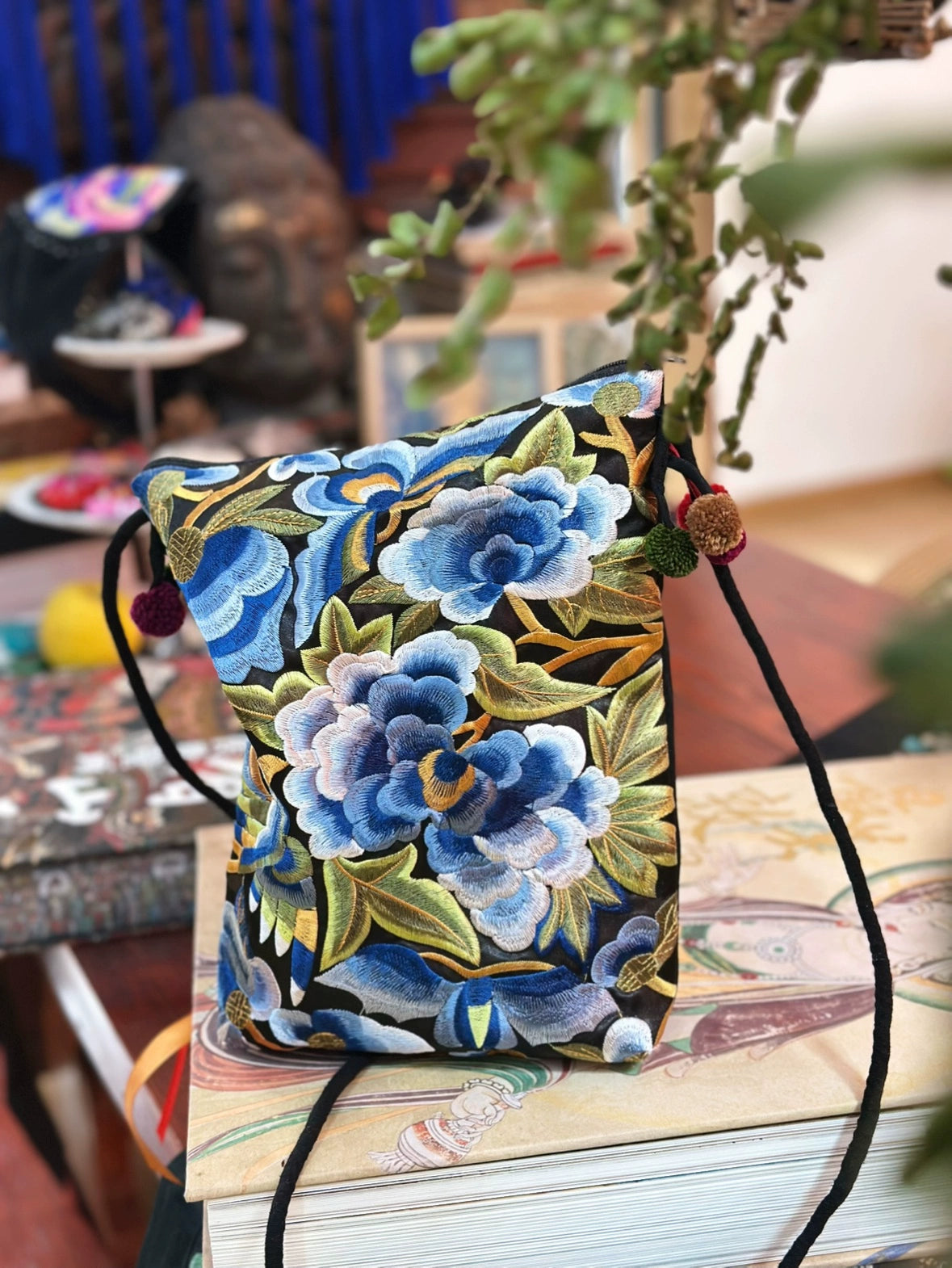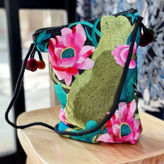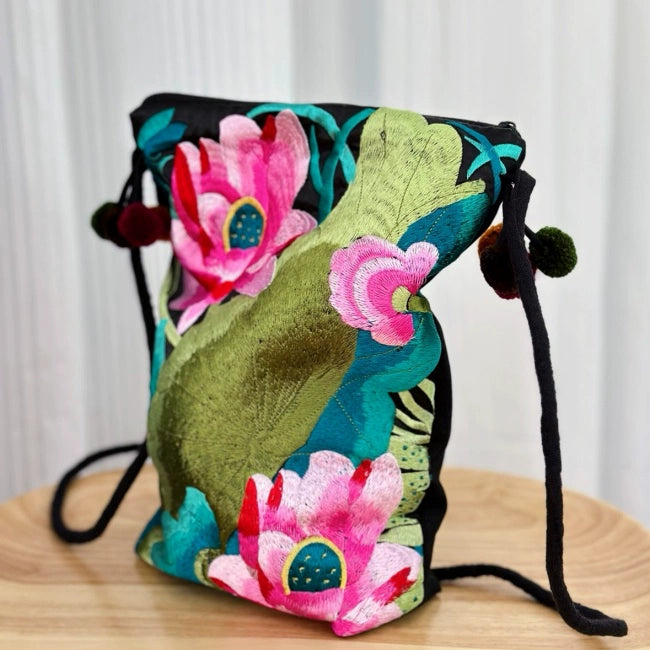 Lotus Embroidery, Embroidery Change Bag, Literary and Artistic Fan Embroidery Gift Bag