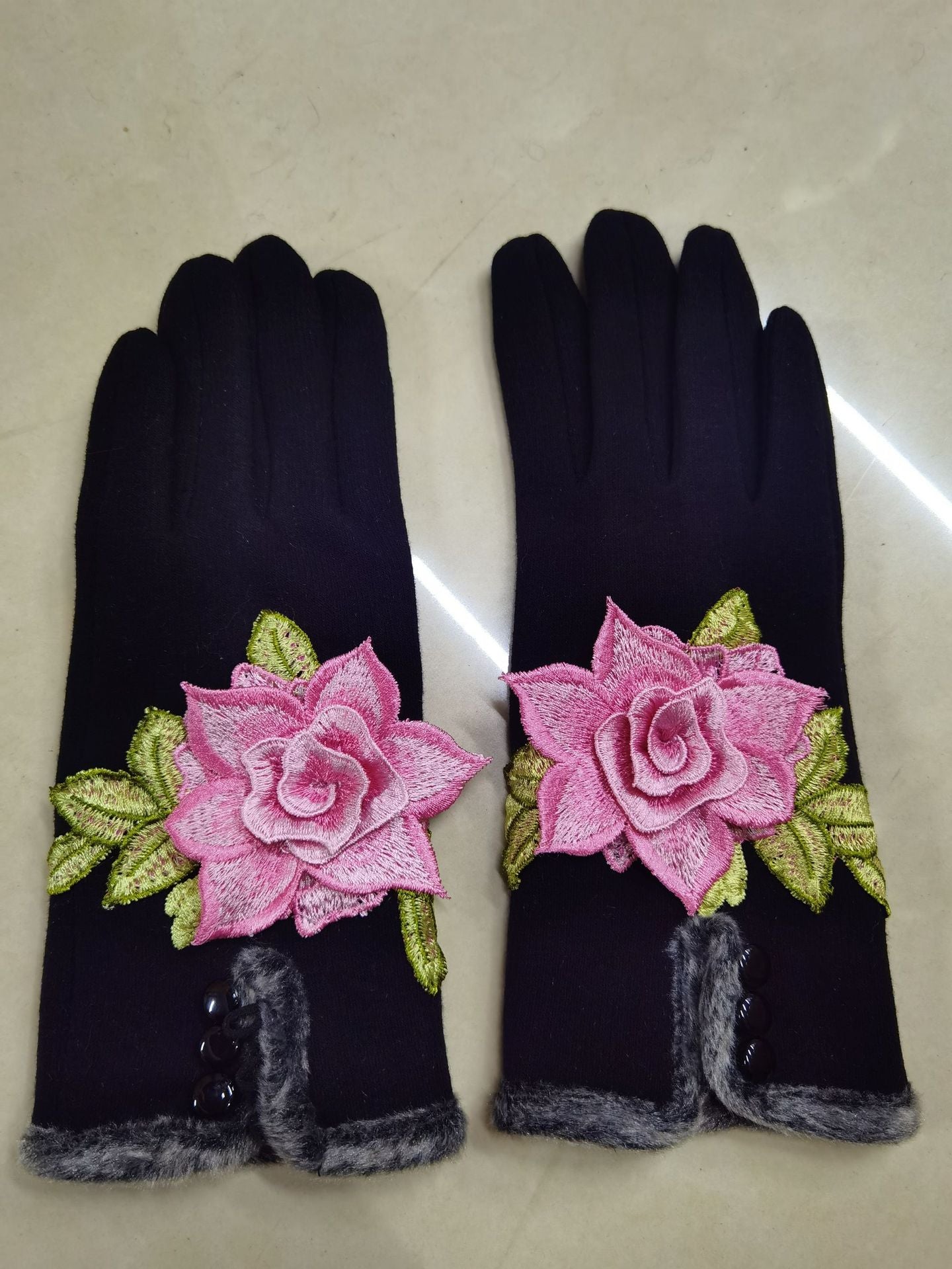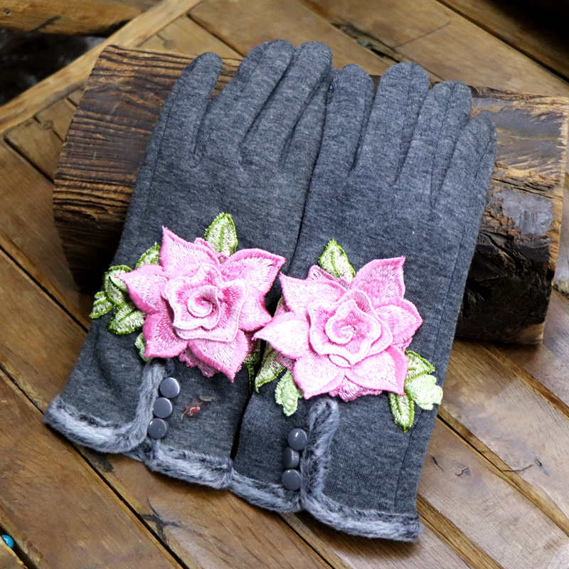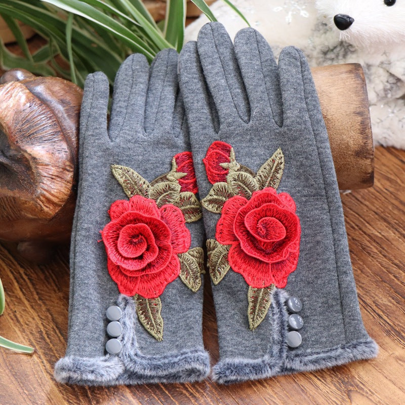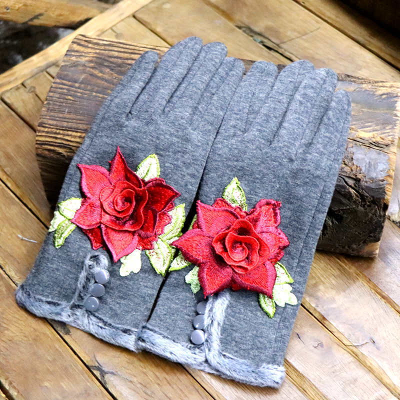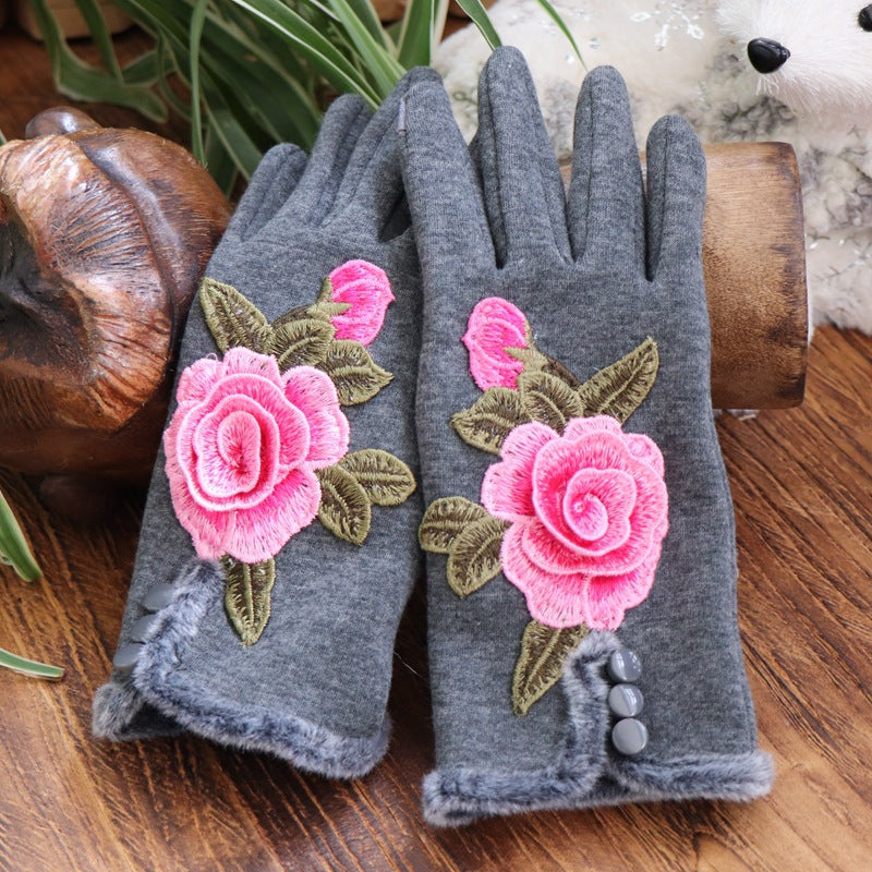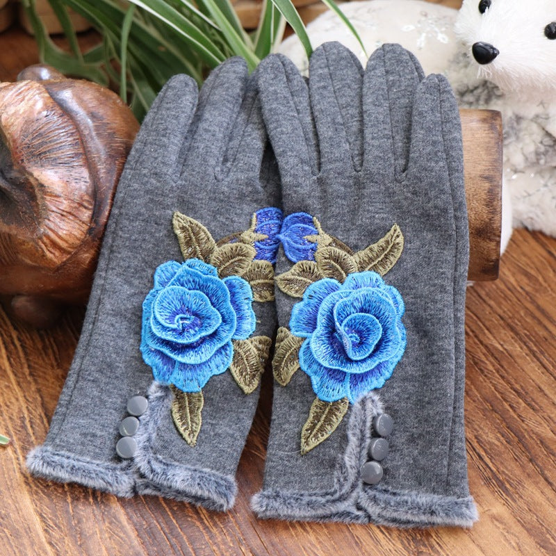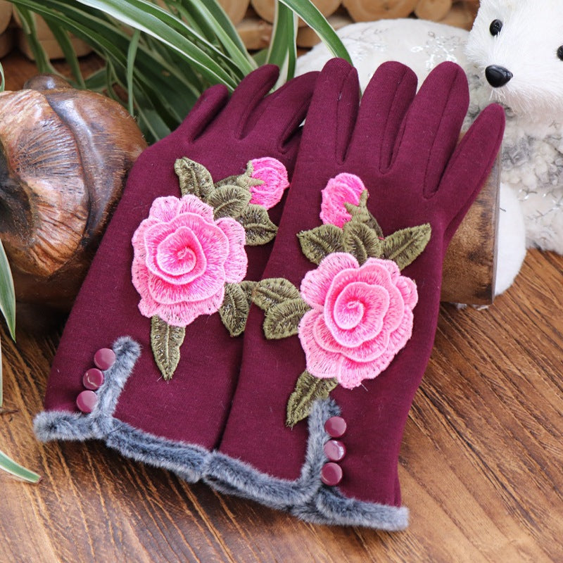 Ethnic Embroidery and Velvet Warm Embroidery Gloves Refer To Touch-screen Gloves and Velvet Cycling Five-finger Gloves